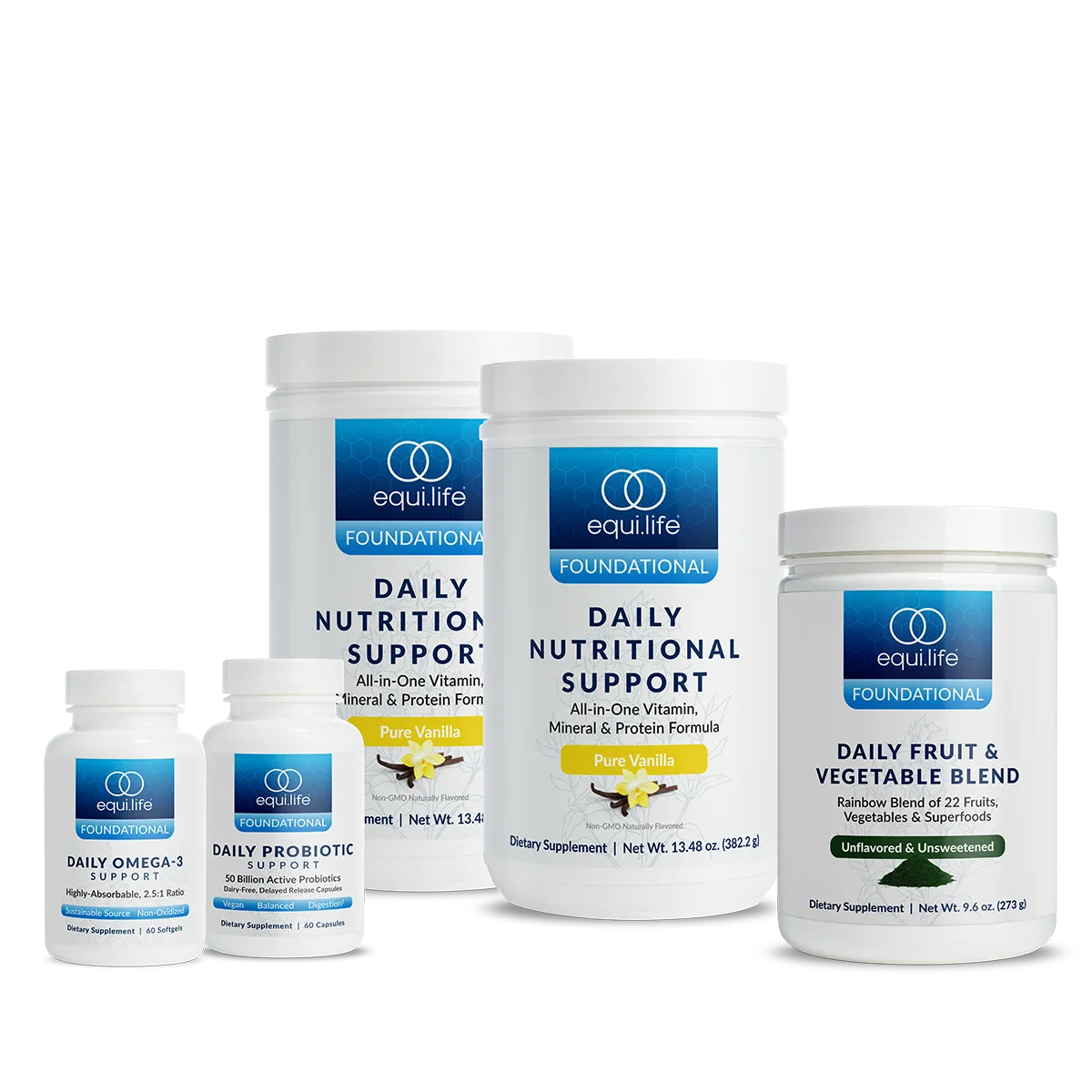 Designed to take the guesswork out of staying well. Daily nutritional support packed with vitamins, minerals, protein, electrolyte support, probiotics, and heart healthy Omega 3s.